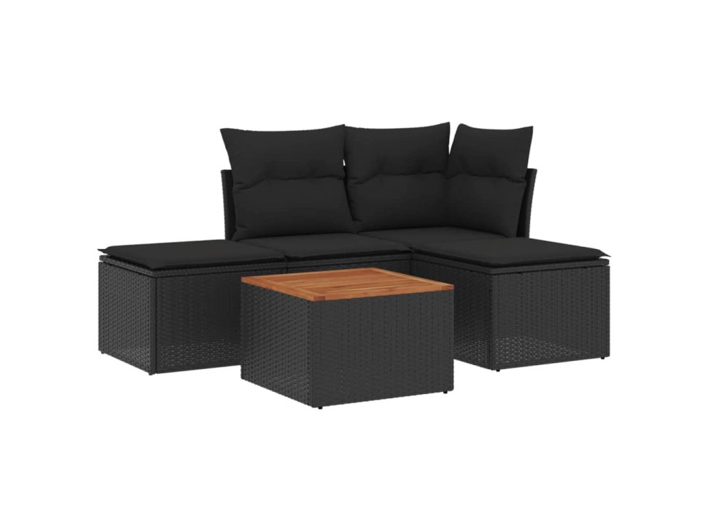 vidaXL 5-dielna záhradná súprava pohoviek s vankúšmi čierna polyratan