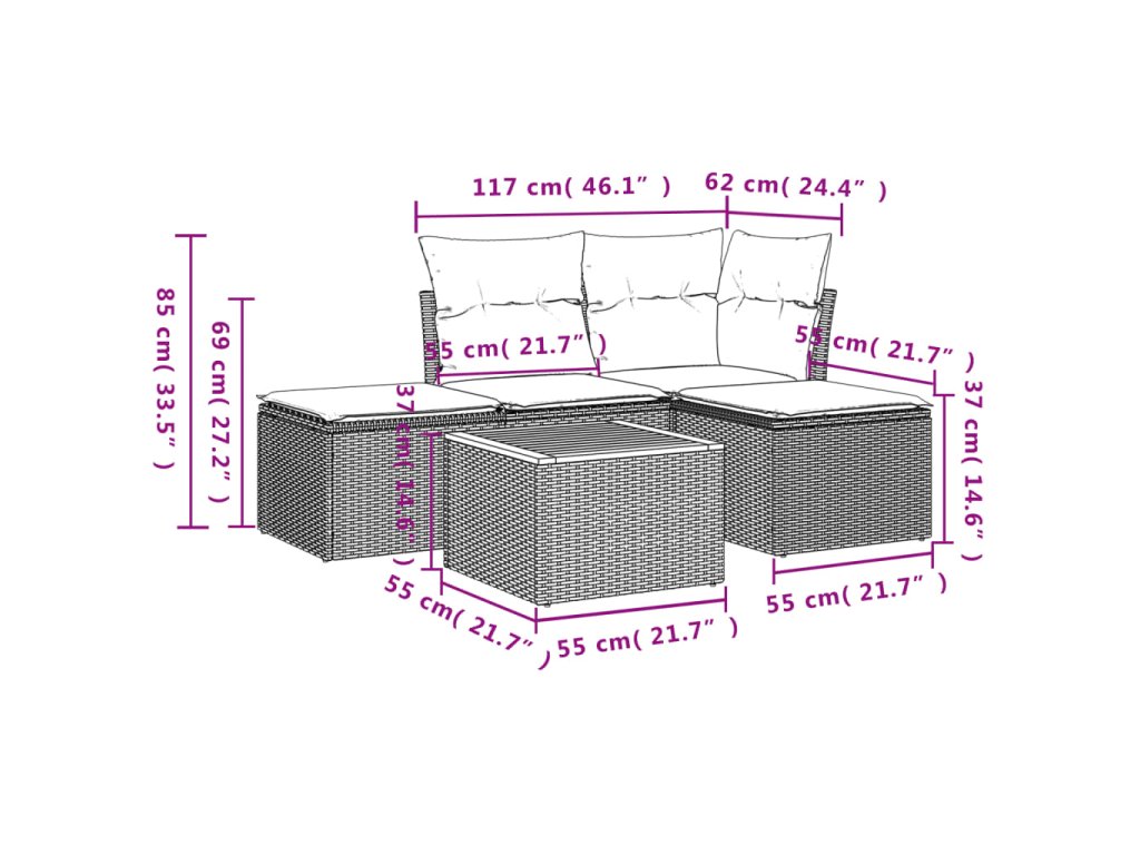 - Modulárny dizajn: Táto súprava vonkajšieho nábytku má modulárny dizajn, vďaka čomu je úplne flexibilná a ľahko sa premiestňuje, takže si môžete vytvoriť prispôsobené usporiadanie vonkajšieho nábytku.