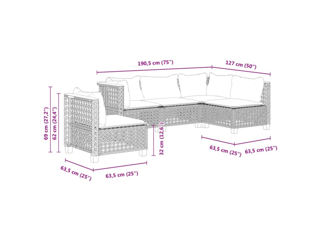 vidaXL 5-dielna záhradná súprava pohoviek s vankúšmi čierna polyratan