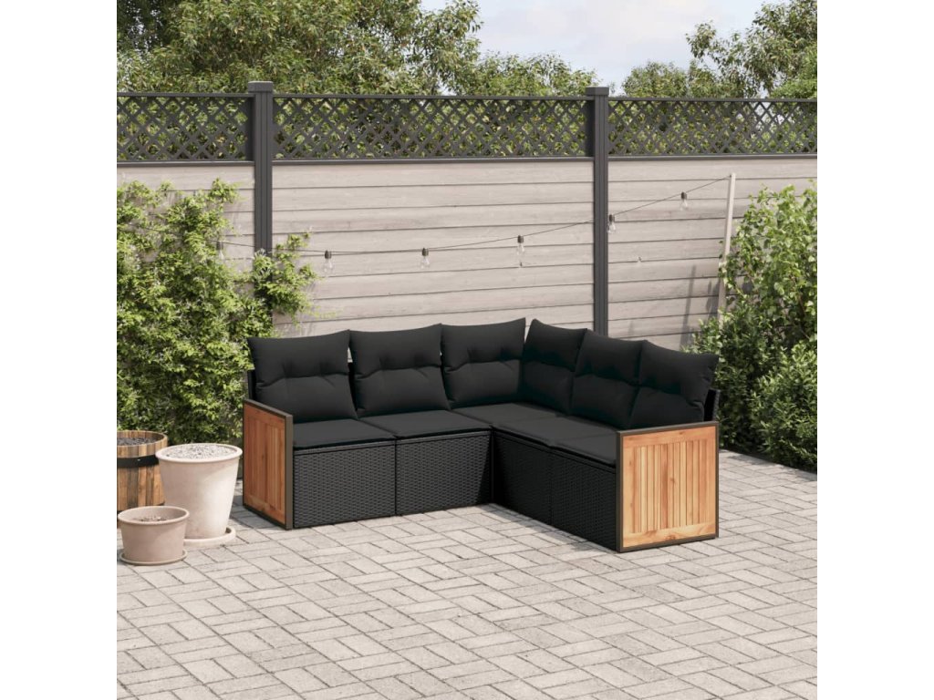 vidaXL 5-dielna záhradná súprava pohoviek s vankúšmi čierna polyratan