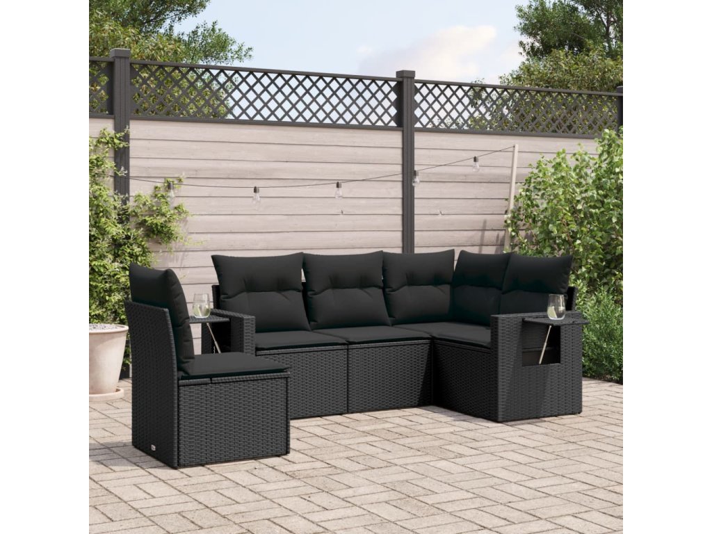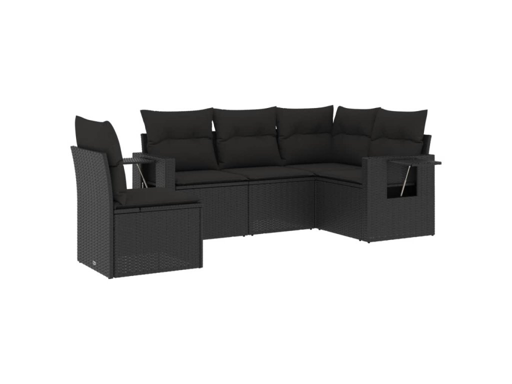 vidaXL 5-dielna záhradná súprava pohoviek s vankúšmi čierna polyratan
