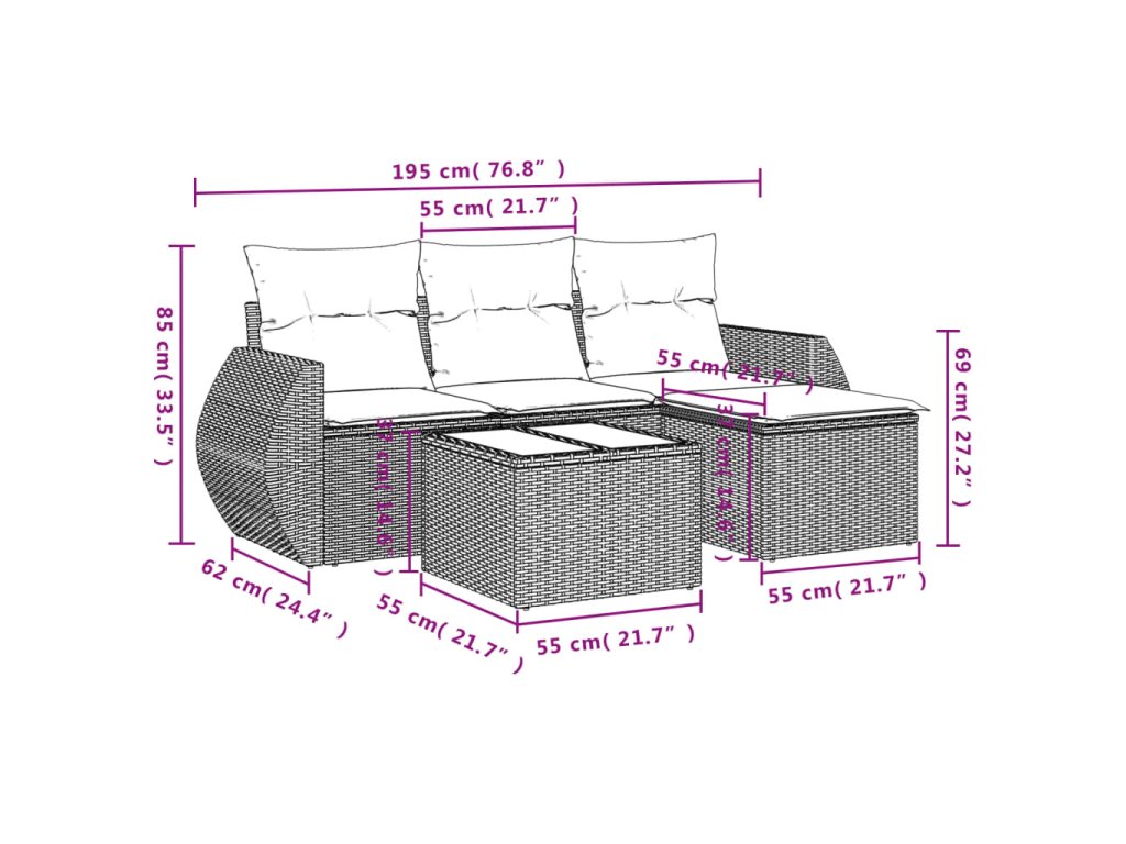 - Modulárny dizajn: Táto súprava vonkajšieho nábytku má modulárny dizajn, vďaka čomu je úplne flexibilná a ľahko sa premiestňuje, takže si môžete vytvoriť prispôsobené usporiadanie vonkajšieho nábytku.