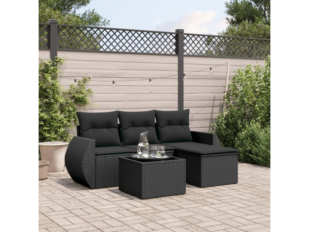 vidaXL 5-dielna záhradná súprava pohoviek s vankúšmi čierna polyratan