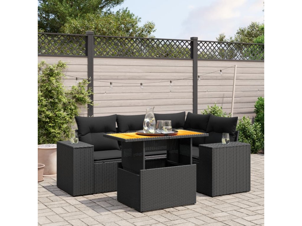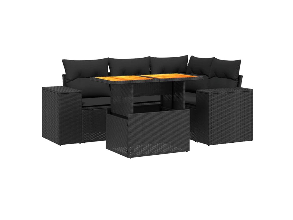 vidaXL 5-dielna záhradná súprava pohoviek s vankúšmi čierna polyratan