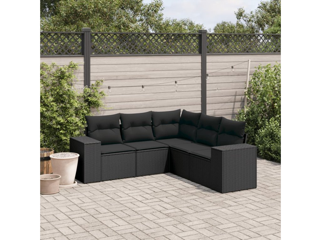 vidaXL 5-dielna záhradná súprava pohoviek s vankúšmi čierna polyratan