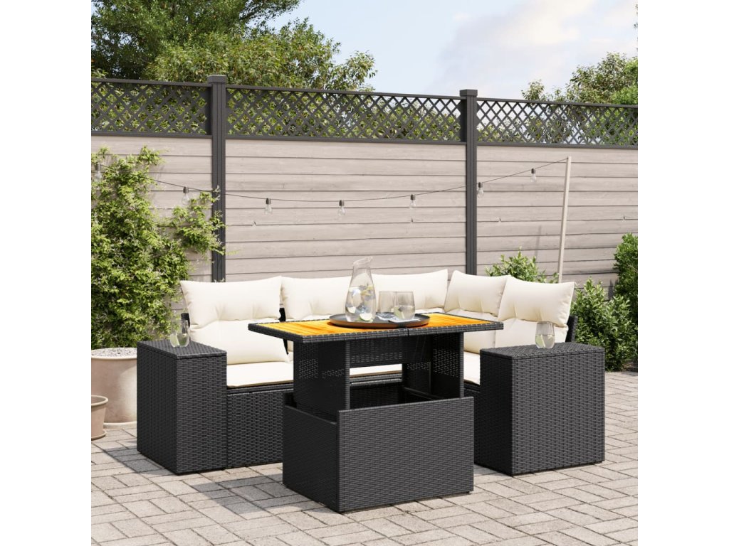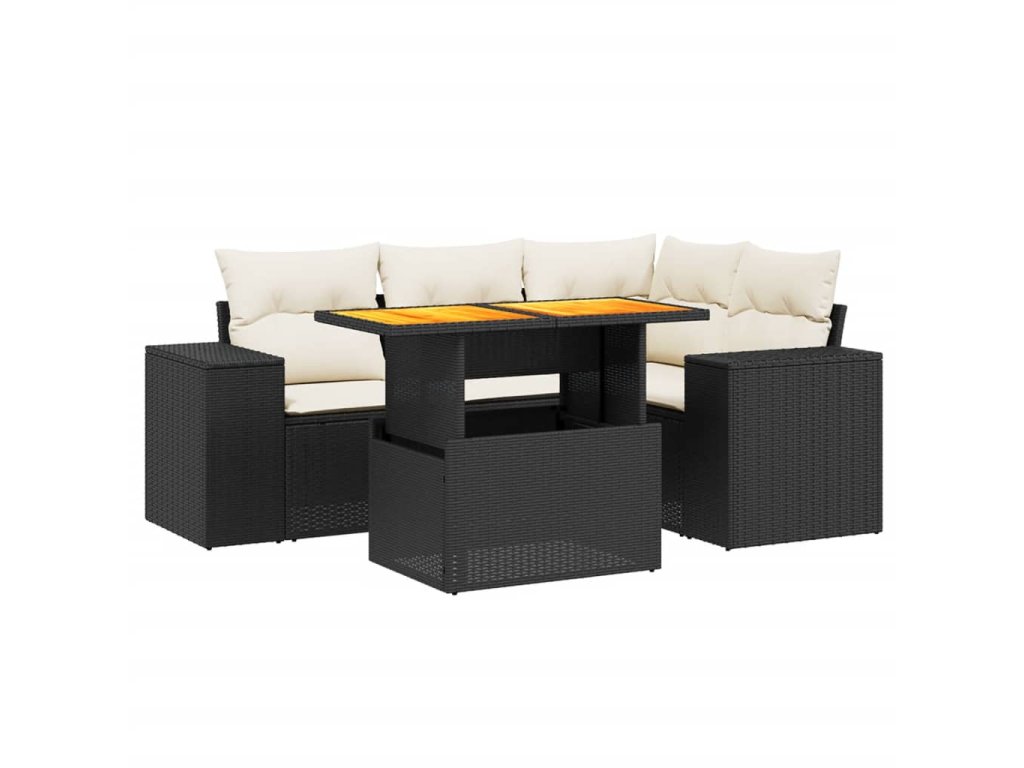 vidaXL 5-dielna záhradná súprava pohoviek s vankúšmi čierna polyratan
