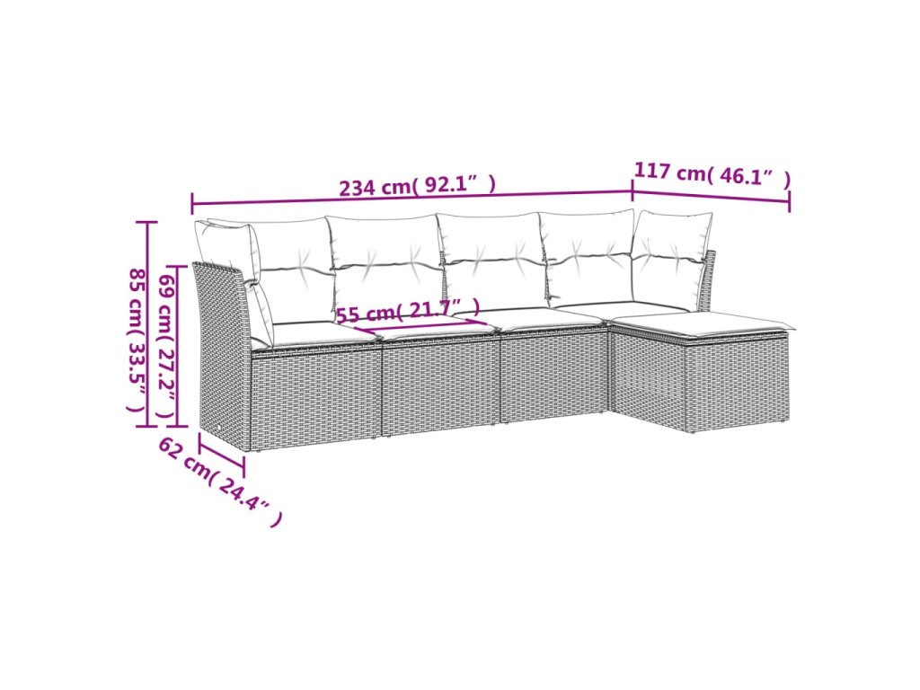 - Celkové rozmery pohovky: 234 x 117 x 69 cm (Š x H x V)