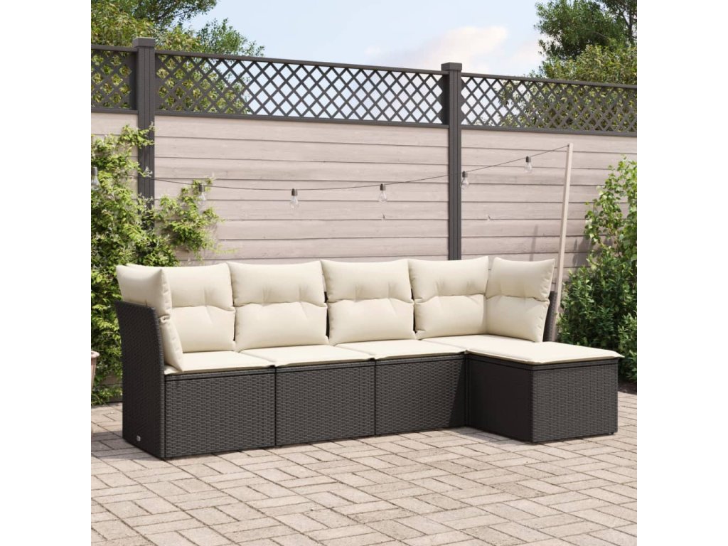 vidaXL 5-dielna záhradná súprava pohoviek s vankúšmi čierna polyratan