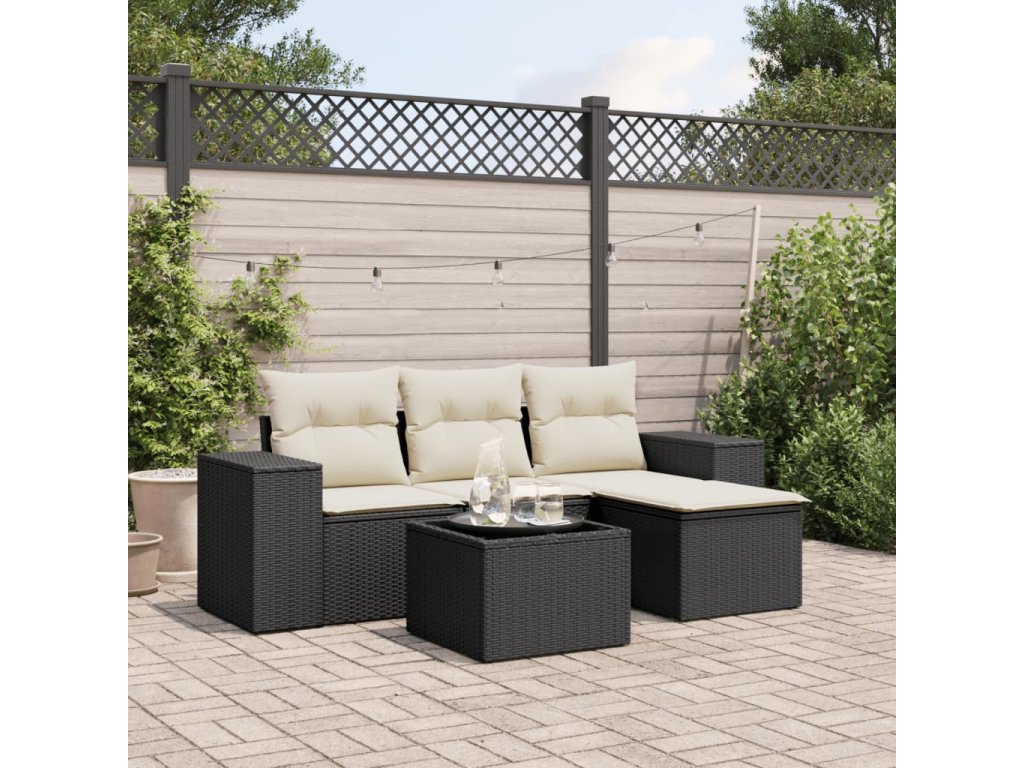 vidaXL 5-dielna záhradná súprava pohoviek s vankúšmi čierna polyratan