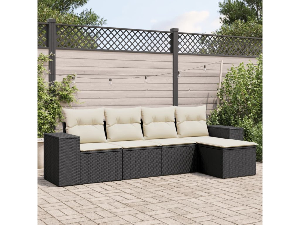 vidaXL 5-dielna záhradná súprava pohoviek s vankúšmi čierna polyratan