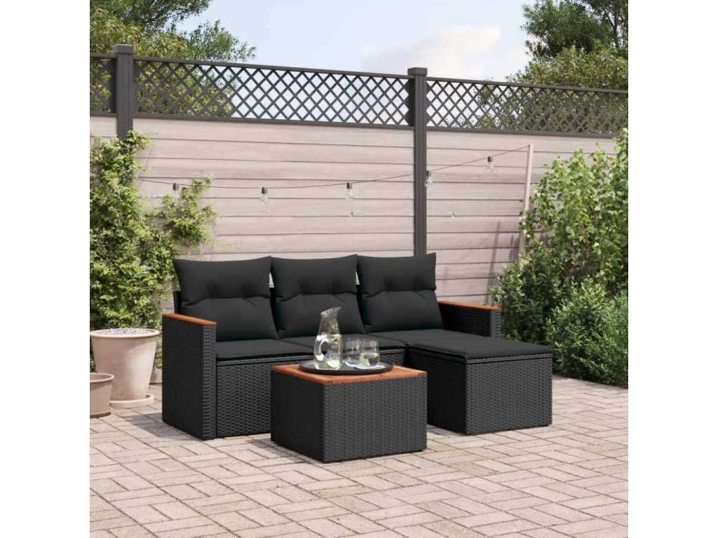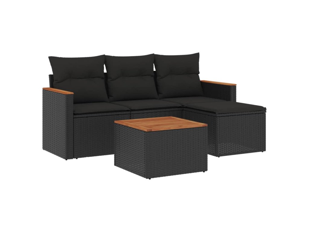 vidaXL 5-dielna záhradná súprava pohoviek s vankúšmi čierna polyratan