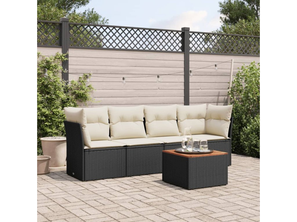 vidaXL 5-dielna záhradná súprava pohoviek s vankúšmi čierna polyratan