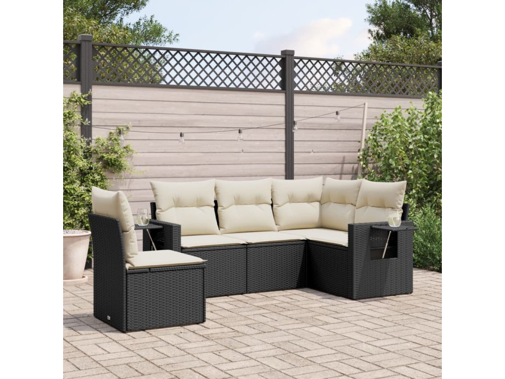 vidaXL 5-dielna záhradná súprava pohoviek s vankúšmi čierna polyratan