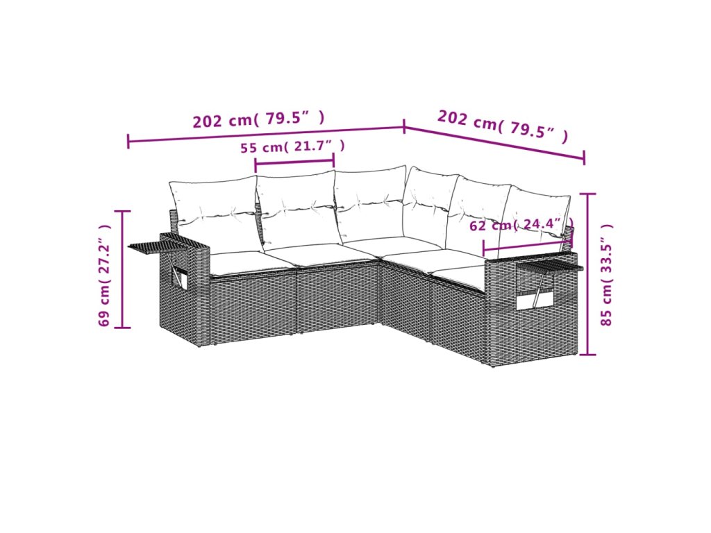 vidaXL 5-dielna záhradná súprava pohoviek s vankúšmi hnedá polyratan