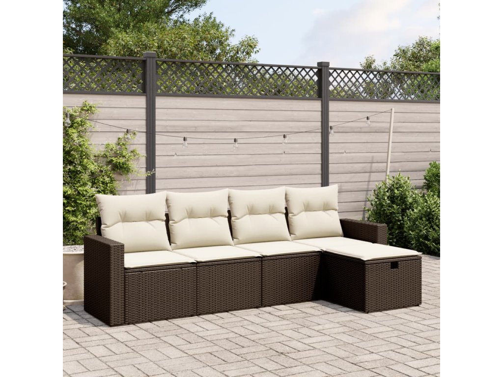 vidaXL 5-dielna záhradná súprava pohoviek s vankúšmi hnedá polyratan