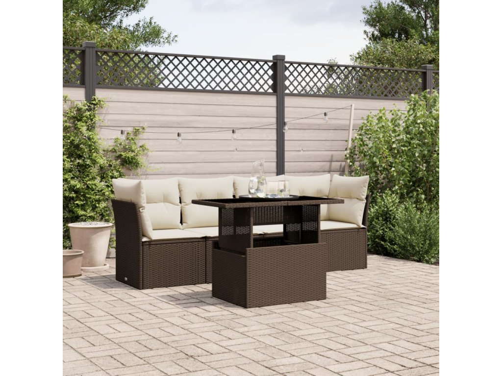 vidaXL 5-dielna záhradná súprava pohoviek s vankúšmi hnedá polyratan