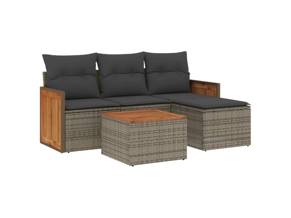 vidaXL 5-dielna záhradná súprava pohoviek s vankúšmi sivá polyratanová