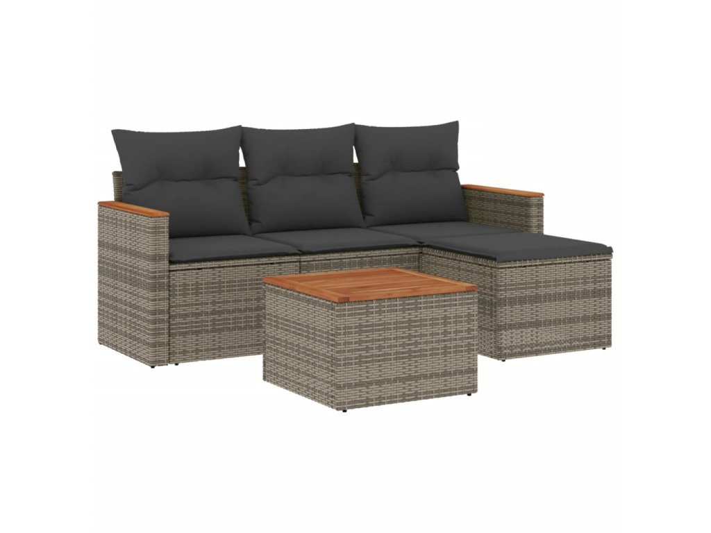 vidaXL 5-dielna záhradná súprava pohoviek s vankúšmi sivá polyratanová