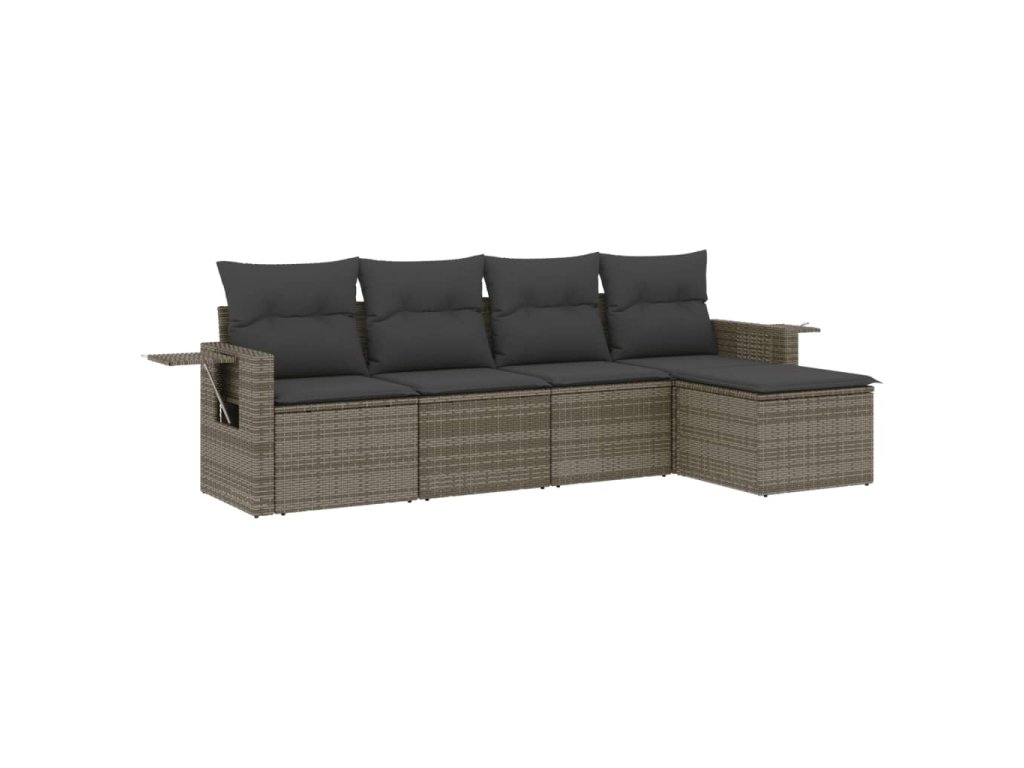 vidaXL 5-dielna záhradná súprava pohoviek s vankúšmi sivá polyratanová