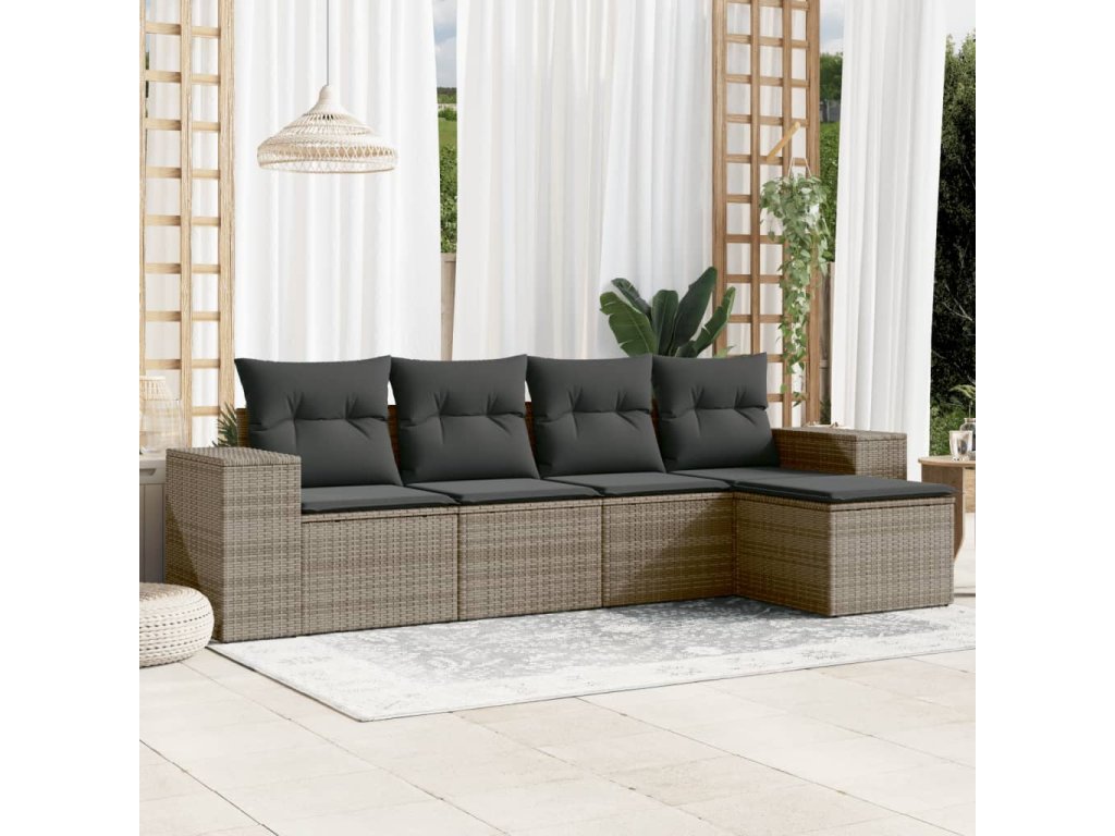 vidaXL 5-dielna záhradná súprava pohoviek s vankúšmi sivá polyratanová