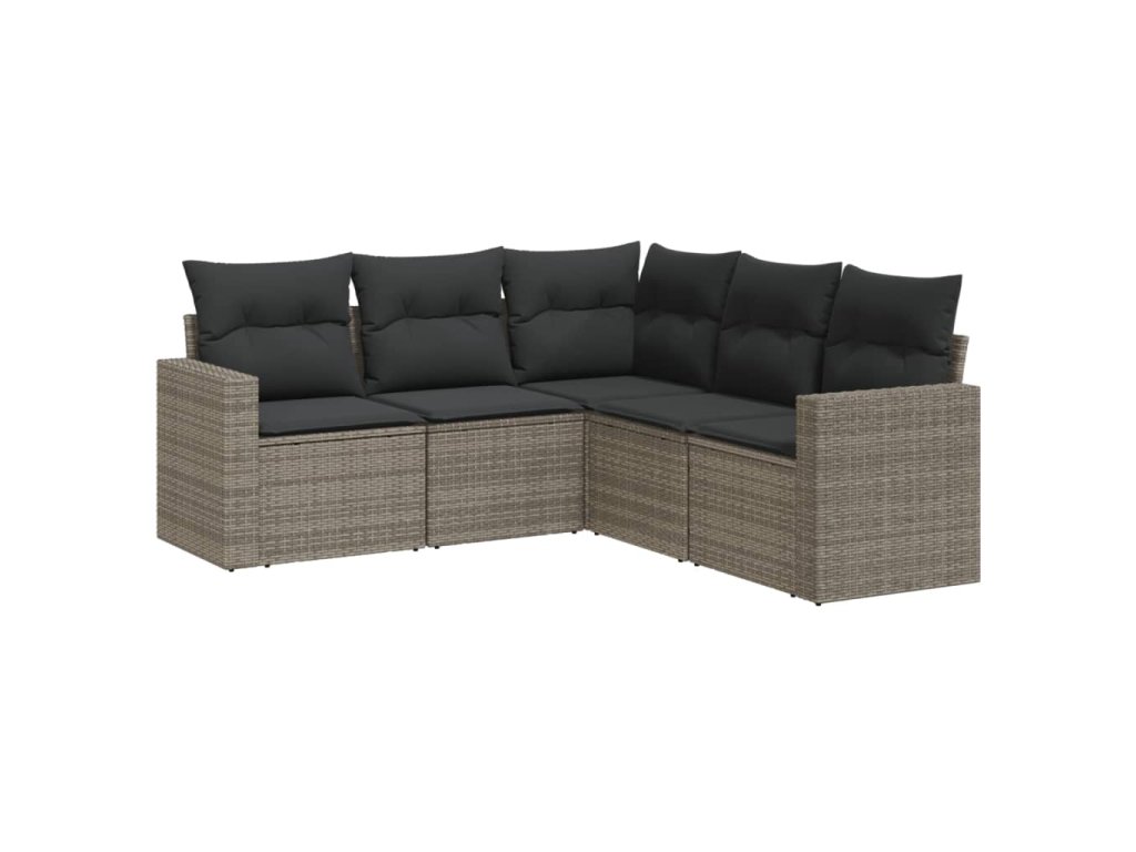 vidaXL 5-dielna záhradná súprava pohoviek s vankúšmi sivá polyratanová