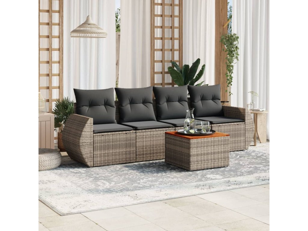 vidaXL 5-dielna záhradná súprava pohoviek s vankúšmi sivá polyratanová