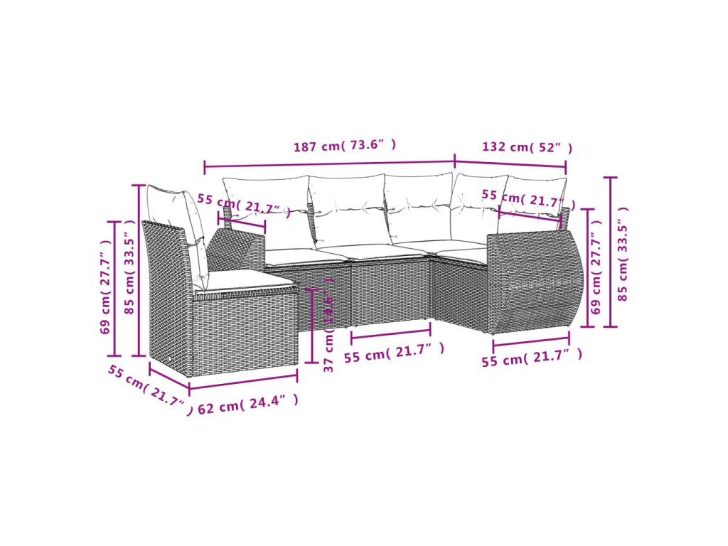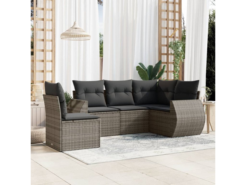 vidaXL 5-dielna záhradná súprava pohoviek s vankúšmi sivá polyratanová
