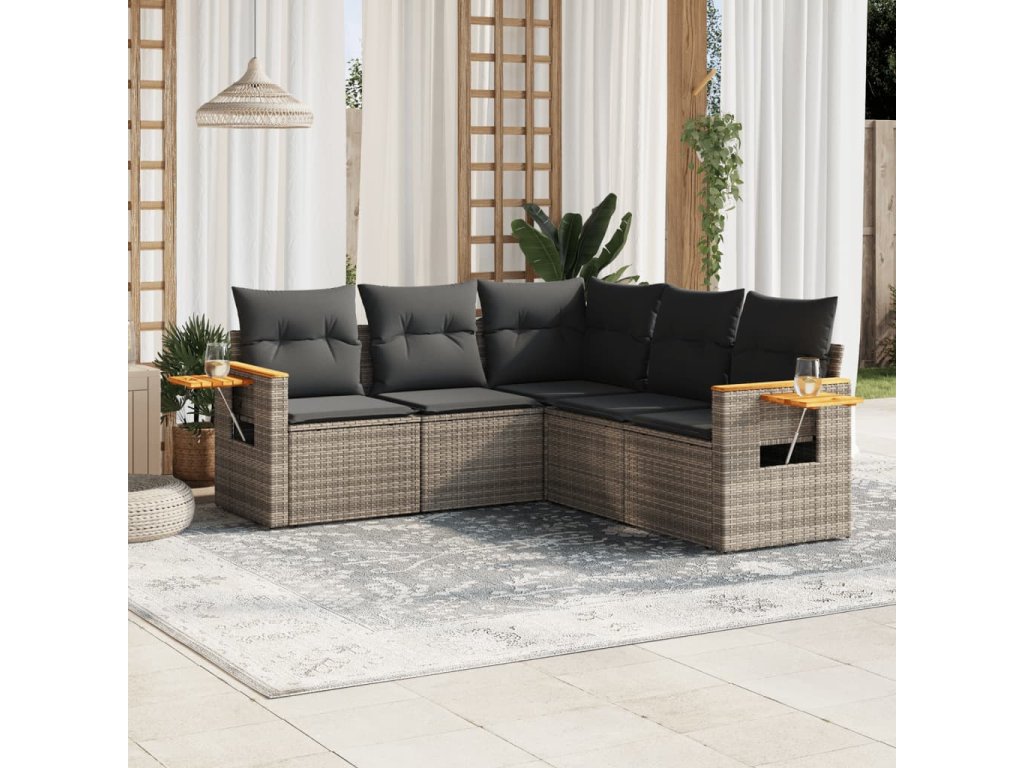 vidaXL 5-dielna záhradná súprava pohoviek s vankúšmi sivá polyratanová
