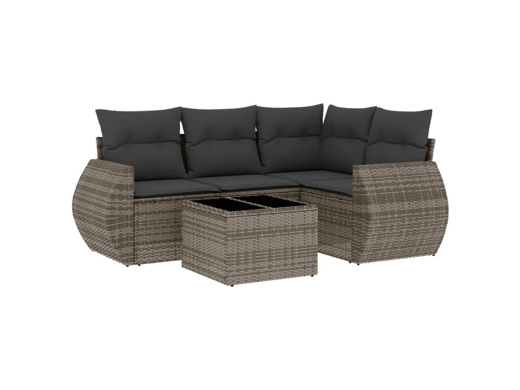 vidaXL 5-dielna záhradná súprava pohoviek s vankúšmi sivá polyratanová