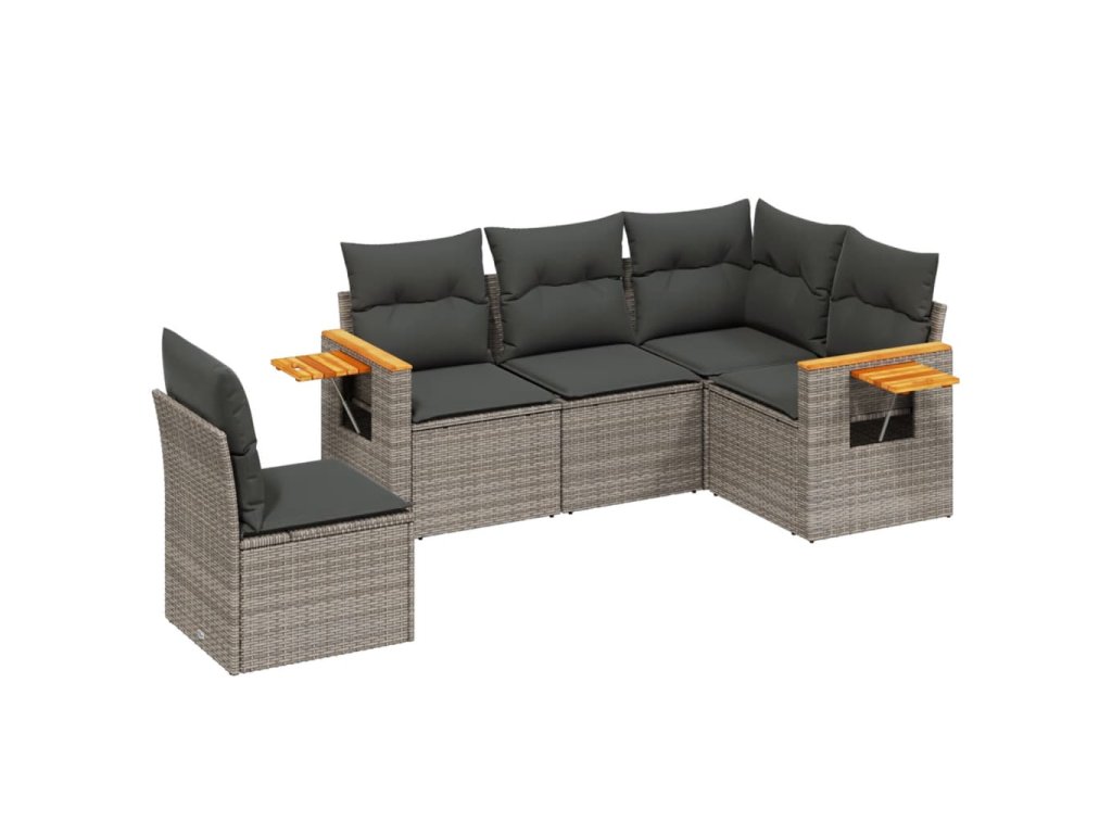 vidaXL 5-dielna záhradná súprava pohoviek s vankúšmi sivá polyratanová