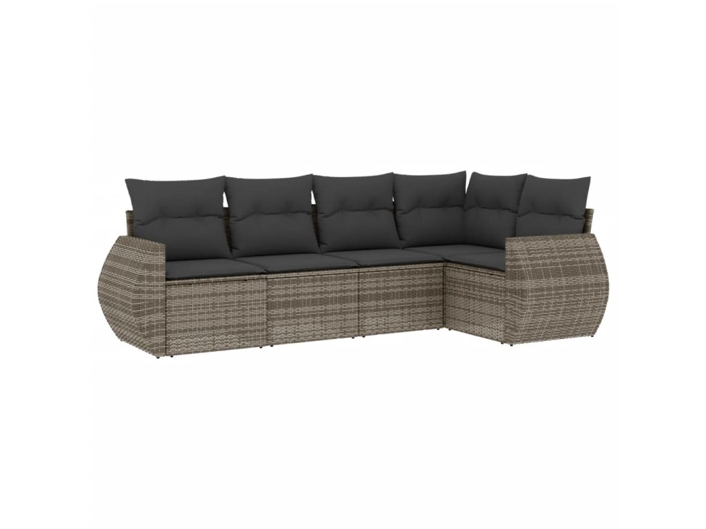 vidaXL 5-dielna záhradná súprava pohoviek s vankúšmi sivá polyratanová