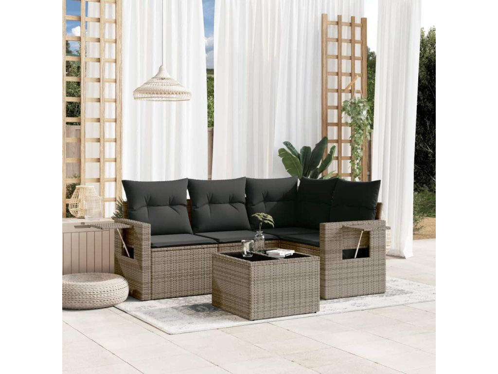 vidaXL 5-dielna záhradná súprava pohoviek s vankúšmi sivá polyratanová
