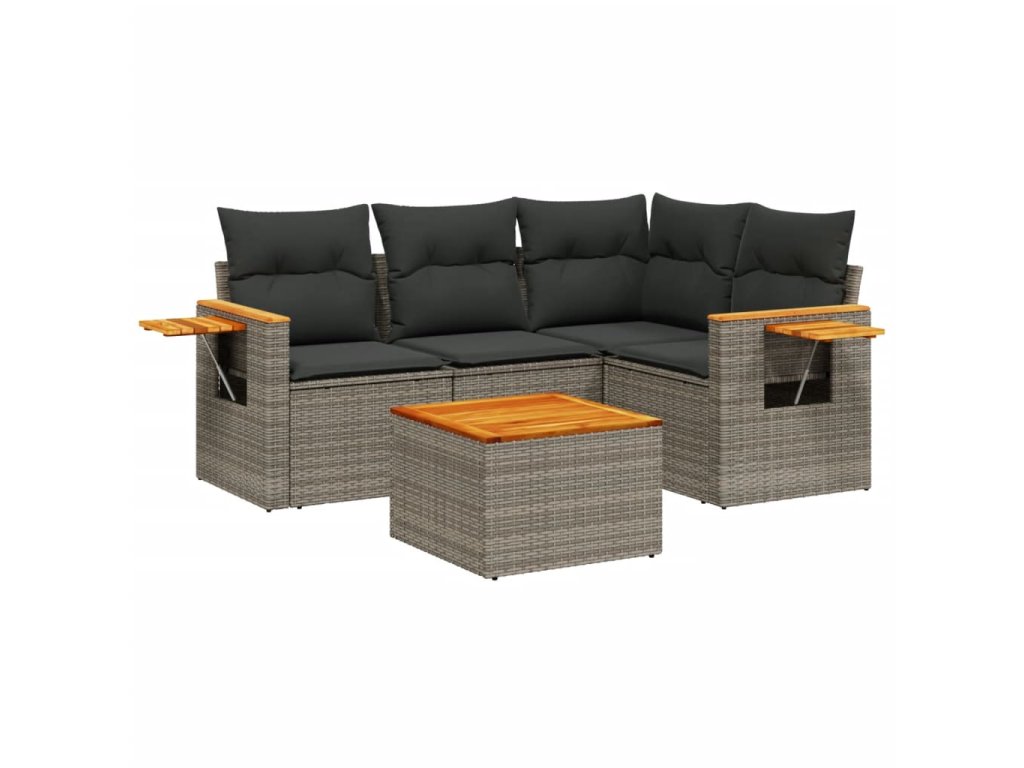 vidaXL 5-dielna záhradná súprava pohoviek s vankúšmi sivá polyratanová