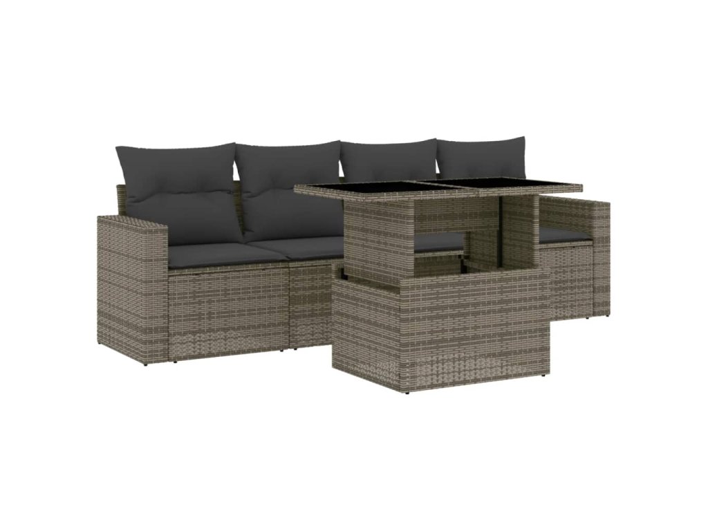 vidaXL 5-dielna záhradná súprava pohoviek s vankúšmi sivá polyratanová