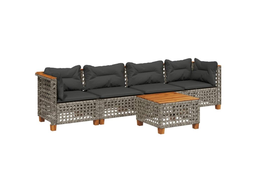 vidaXL 5-dielna záhradná súprava pohoviek s vankúšmi sivá polyratanová