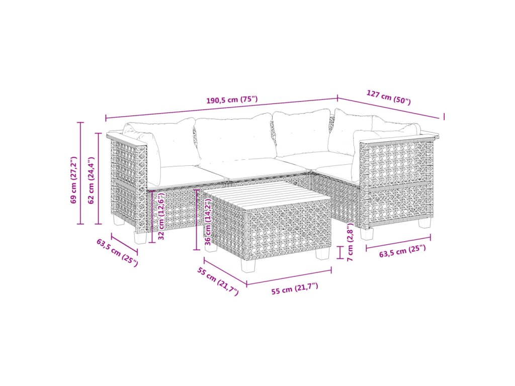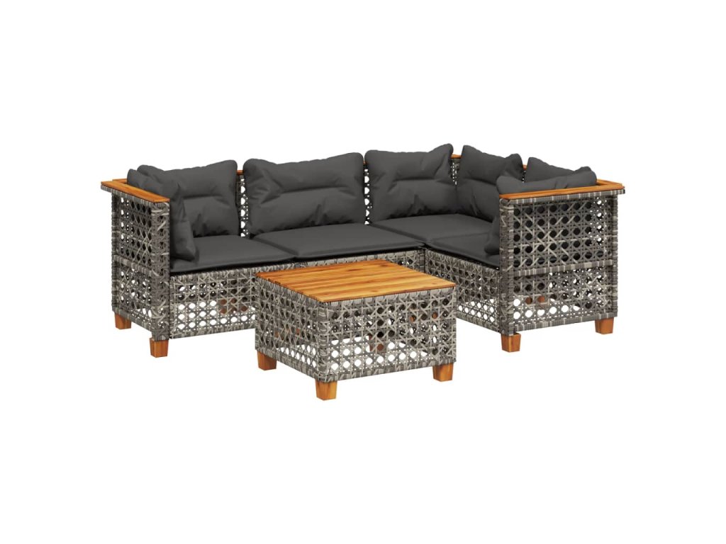 vidaXL 5-dielna záhradná súprava pohoviek s vankúšmi sivá polyratanová