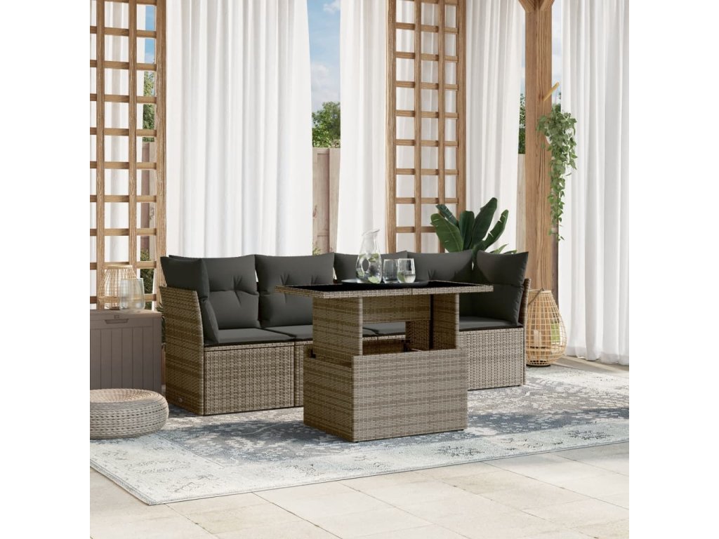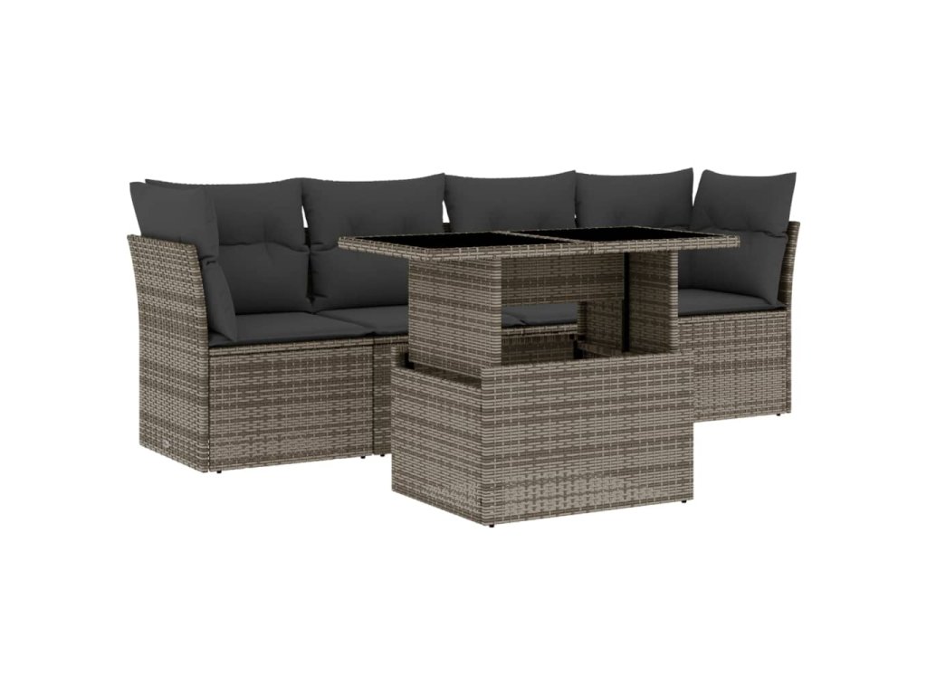 vidaXL 5-dielna záhradná súprava pohoviek s vankúšmi sivá polyratanová