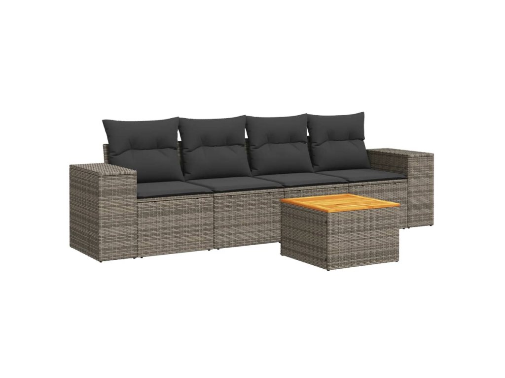vidaXL 5-dielna záhradná súprava pohoviek s vankúšmi sivá polyratanová