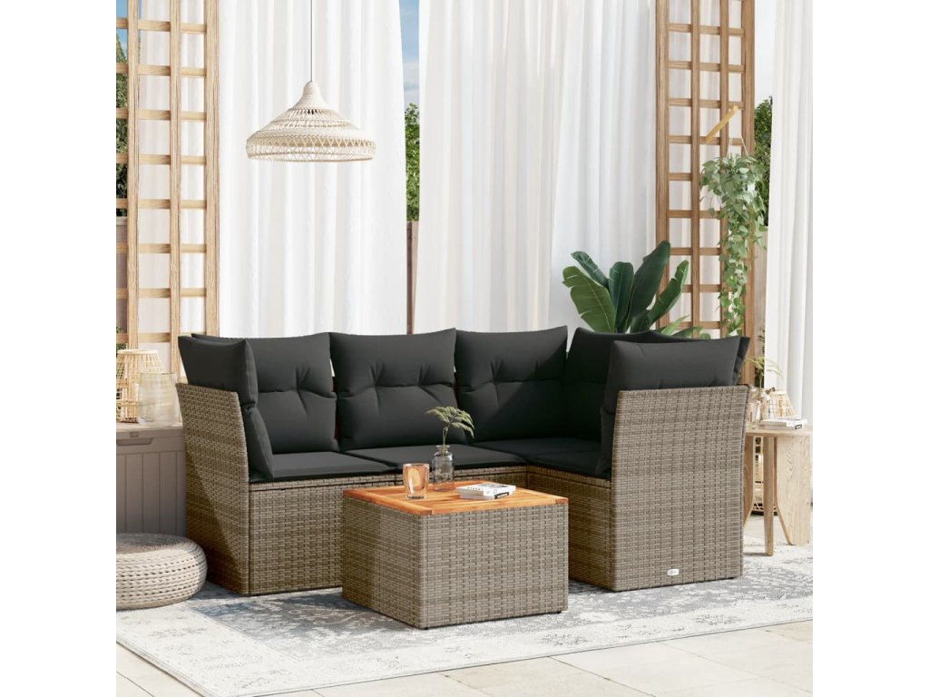 vidaXL 5-dielna záhradná súprava pohoviek s vankúšmi sivá polyratanová