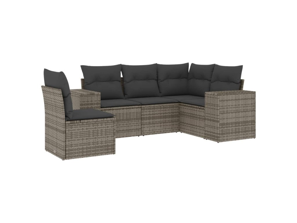 vidaXL 5-dielna záhradná súprava pohoviek s vankúšmi sivá polyratanová