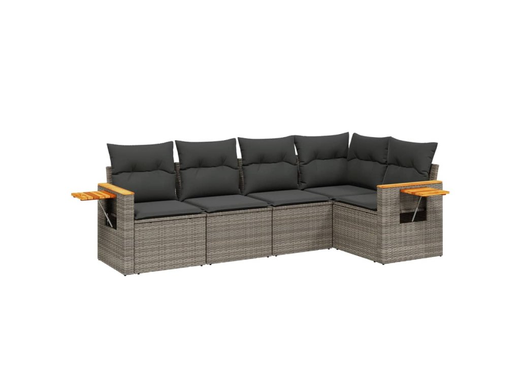 vidaXL 5-dielna záhradná súprava pohoviek s vankúšmi sivá polyratanová