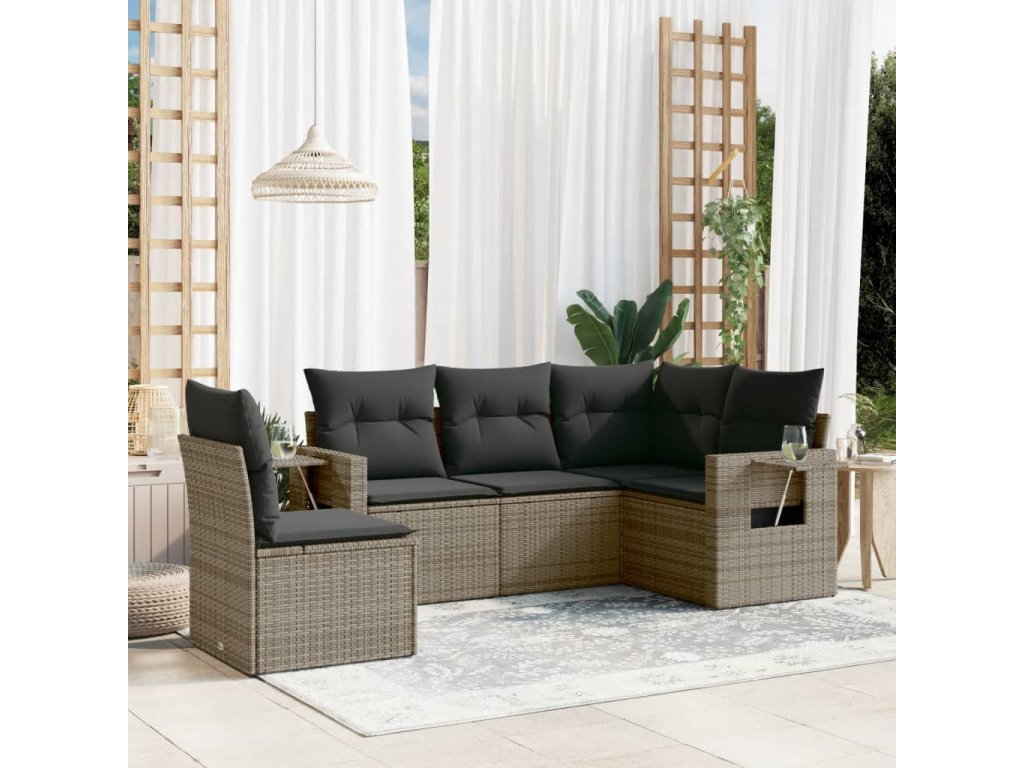 vidaXL 5-dielna záhradná súprava pohoviek s vankúšmi sivá polyratanová