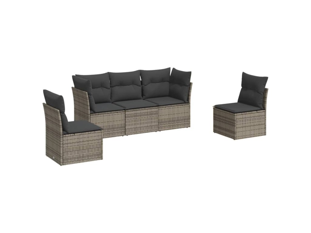 vidaXL 5-dielna záhradná súprava pohoviek s vankúšmi sivá polyratanová