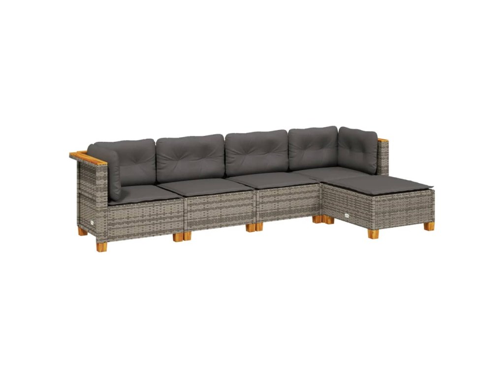vidaXL 5-dielna záhradná súprava pohoviek s vankúšmi sivá polyratanová