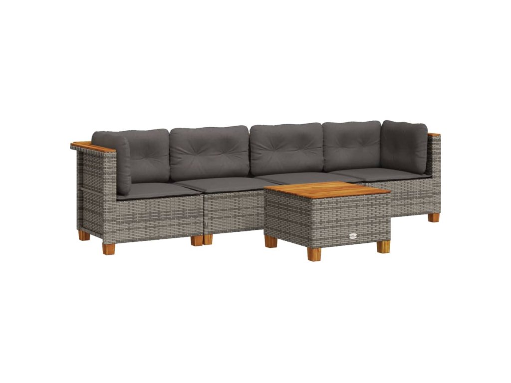 vidaXL 5-dielna záhradná súprava pohoviek s vankúšmi sivá polyratanová