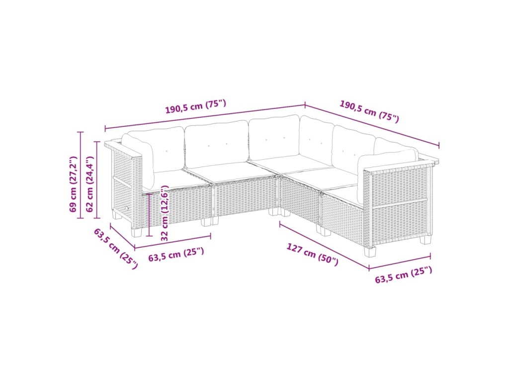 vidaXL 5-dielna záhradná súprava pohoviek s vankúšmi sivá polyratanová