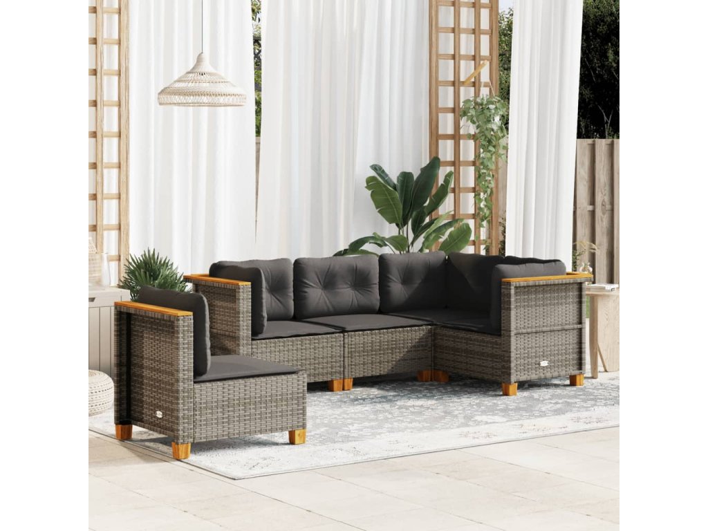 vidaXL 5-dielna záhradná súprava pohoviek s vankúšmi sivá polyratanová