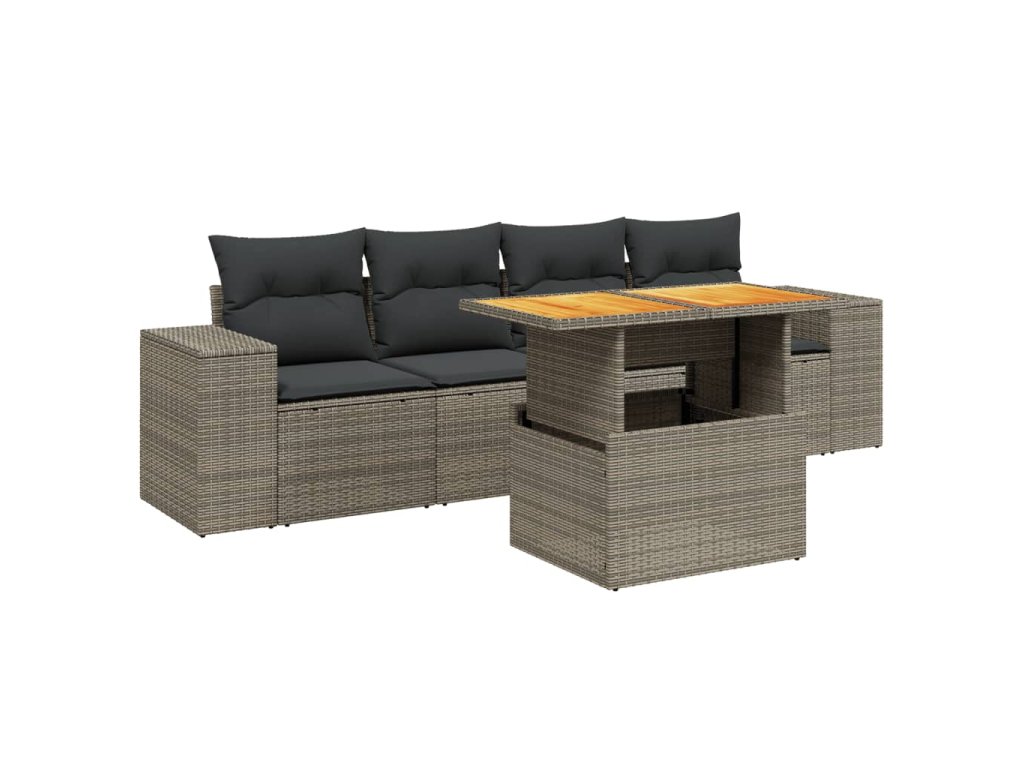 vidaXL 5-dielna záhradná súprava pohoviek s vankúšmi sivá polyratanová