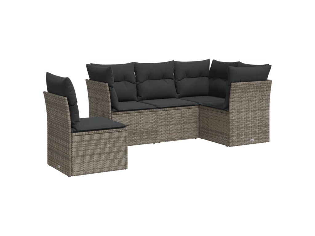 vidaXL 5-dielna záhradná súprava pohoviek s vankúšmi sivá polyratanová