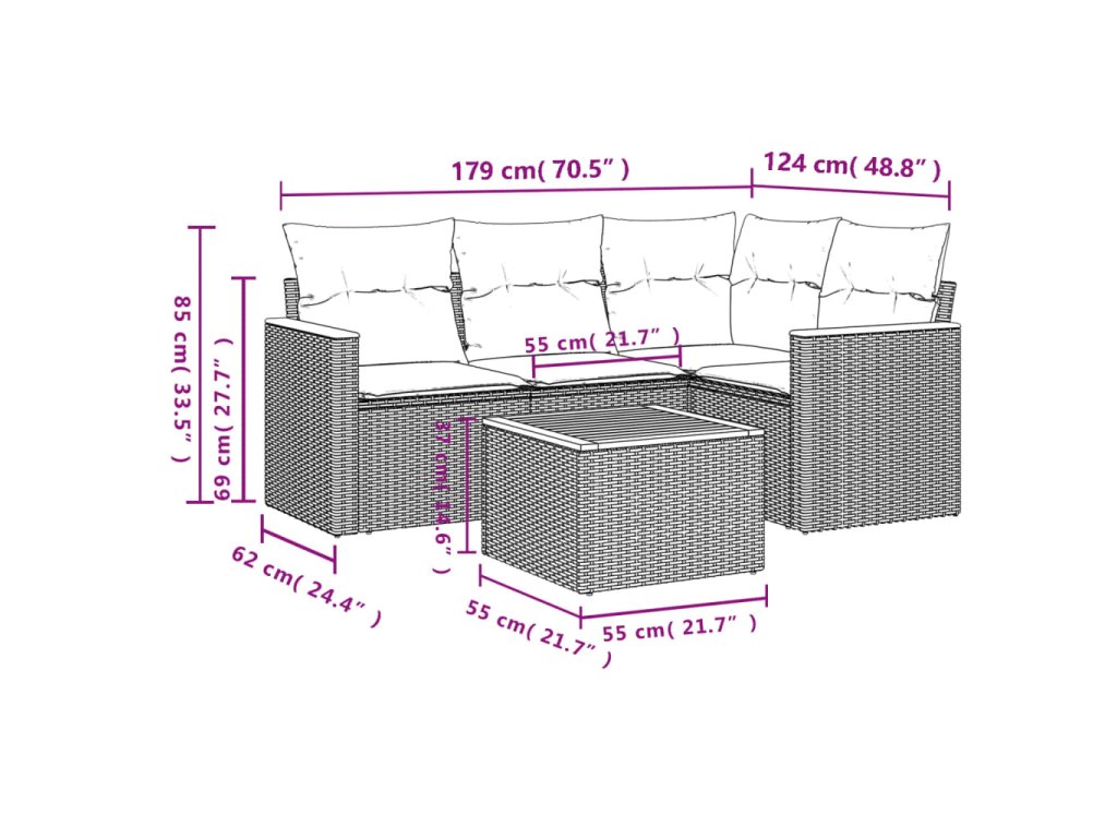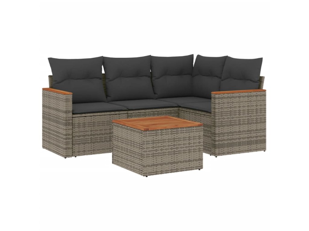 vidaXL 5-dielna záhradná súprava pohoviek s vankúšmi sivá polyratanová